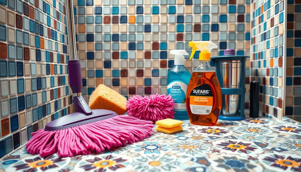 Für die Mosaikfliesen Pflege ist es wichtig, die richtigen Reinigungsmittel zu verwenden. Es sollten pH-neutrale Reiniger bevorzugt werden, besonders bei Glasmosaikfliesen, um das Material nicht anzugreifen. Vermeiden Sie aggressive Substanzen, die Natursteinmosaikfliesen beschädigen könnten.