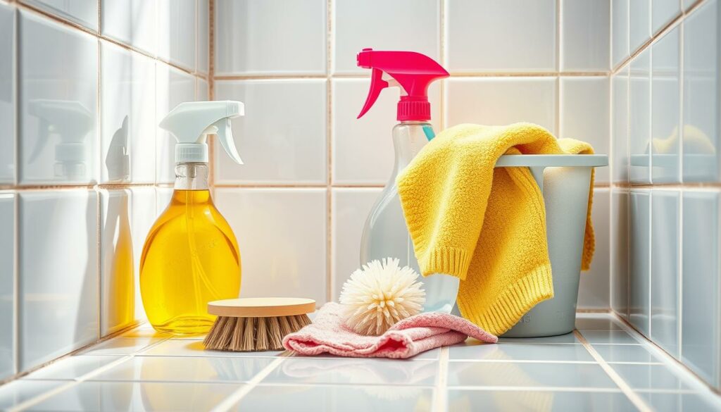 Für eine effektive fliesen auffrischen im Badezimmer eignet sich eine Mischung aus natürlichen Reinigungsmitteln. Zitronensäure mit einem Liter Wasser hilft, Kalkablagerungen zu entfernen und hinterlässt einen frischen Duft. Diese Methode ist nicht nur effektiv, sondern auch umweltfreundlich.