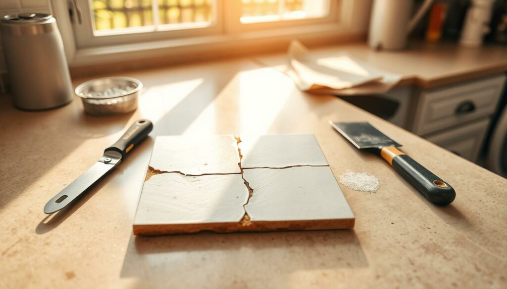 Diese anfänglichen Schritte zur Fliesenreparatur vorbereiten sind nicht nur für das Erscheinungsbild der reparierten Fliese essentiell, sondern auch für deren Langlebigkeit. Eine gut vorbereitete Fläche bietet die beste Grundlage für die spätere Anwendung von Füllstoffen und Lacken. So wird sichergestellt, dass die reparierten Stellen nicht nur optisch den unbeschädigten Fliesen entsprechen, sondern auch dauerhaft haltbar sind.