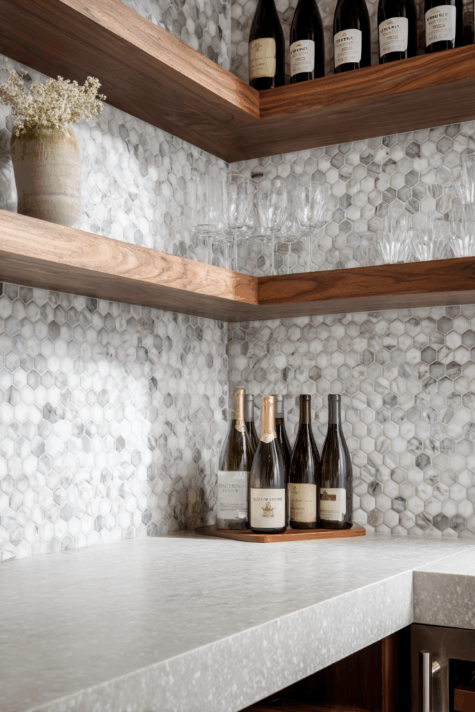 Ganz besonders kommen diese Fliesen zur Geltung, wenn sie in Form von Mosaiken verwendet werden. Ein fliesenspiegel kunstvoll in Mosaik Wabe arrangiert, verstärkt nicht nur die Dynamik und das Raumgefühl, sondern fügt auch ein Element der Bewegung und Textur hinzu, das die Blicke auf sich zieht.