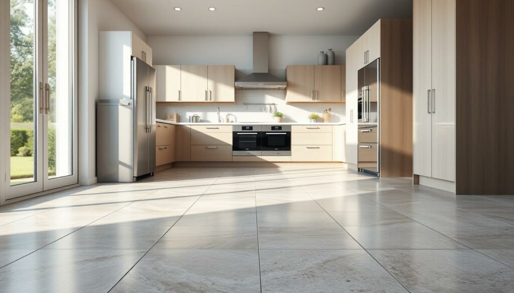 Feinsteinzeug hat sich als herausragende Lösung für pflegeleichte Küchenfliesen etabliert. Mit einer extrem niedrigen Wasseraufnahme von unter 0,5% bietet dieses Material eine unschlagbare Robustheit für Küchenböden und -wände.